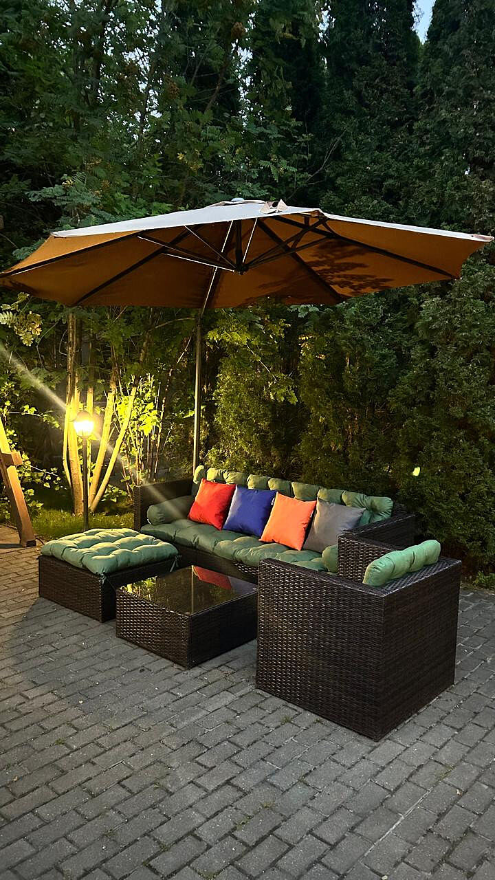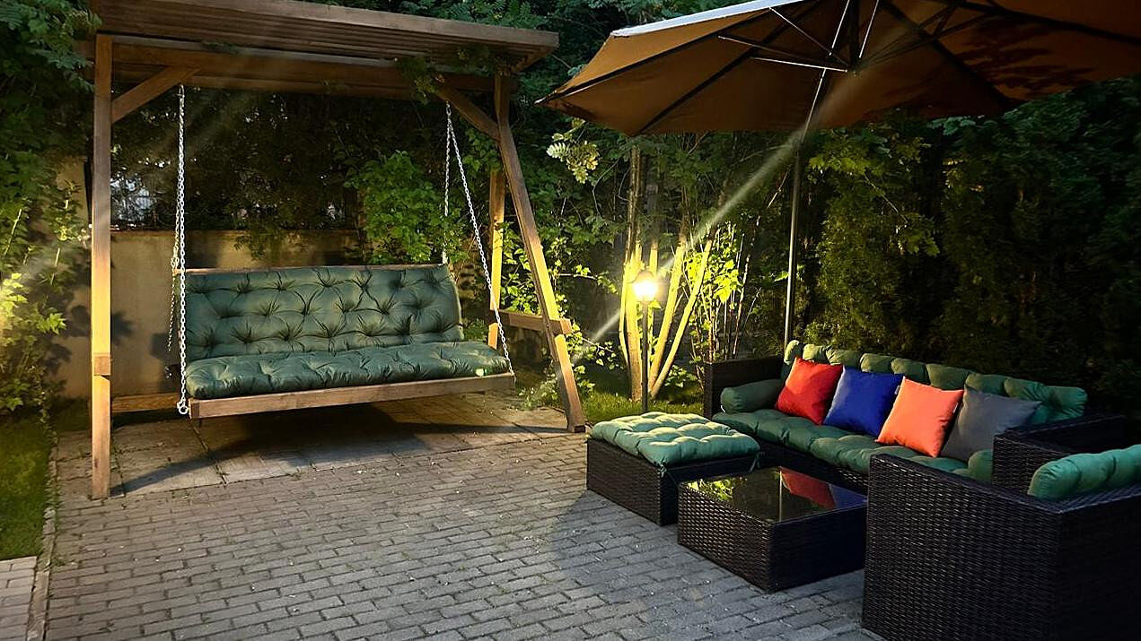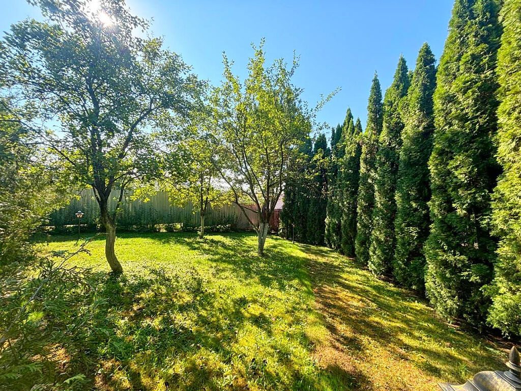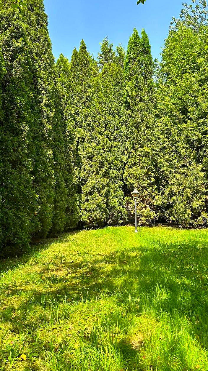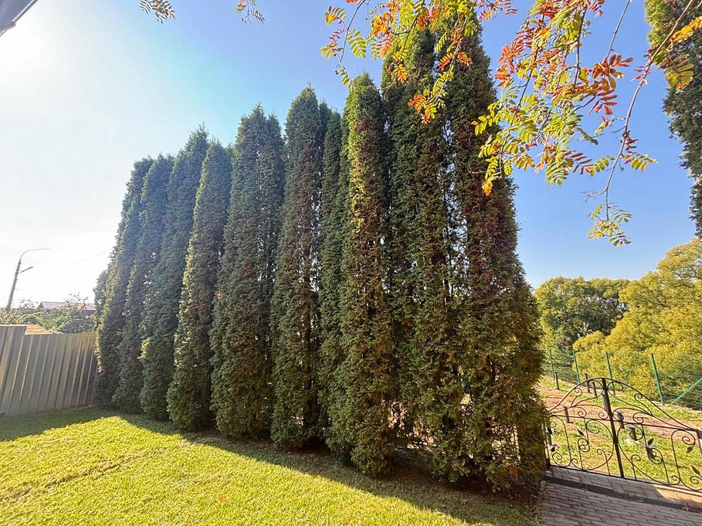 Участок 10 соток, огорожен, ухожен, очень зеленый, много хвойных деревьев, парковки под авто, автоматические ворота. Предусмотрена большая зона для отдыха и купель.