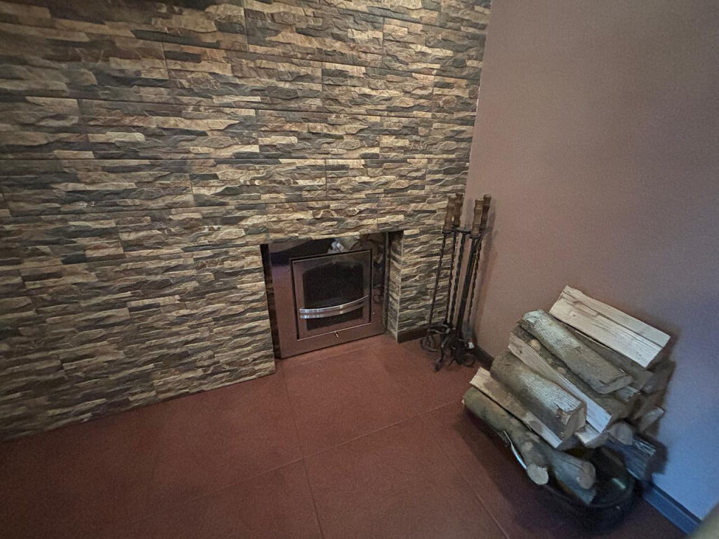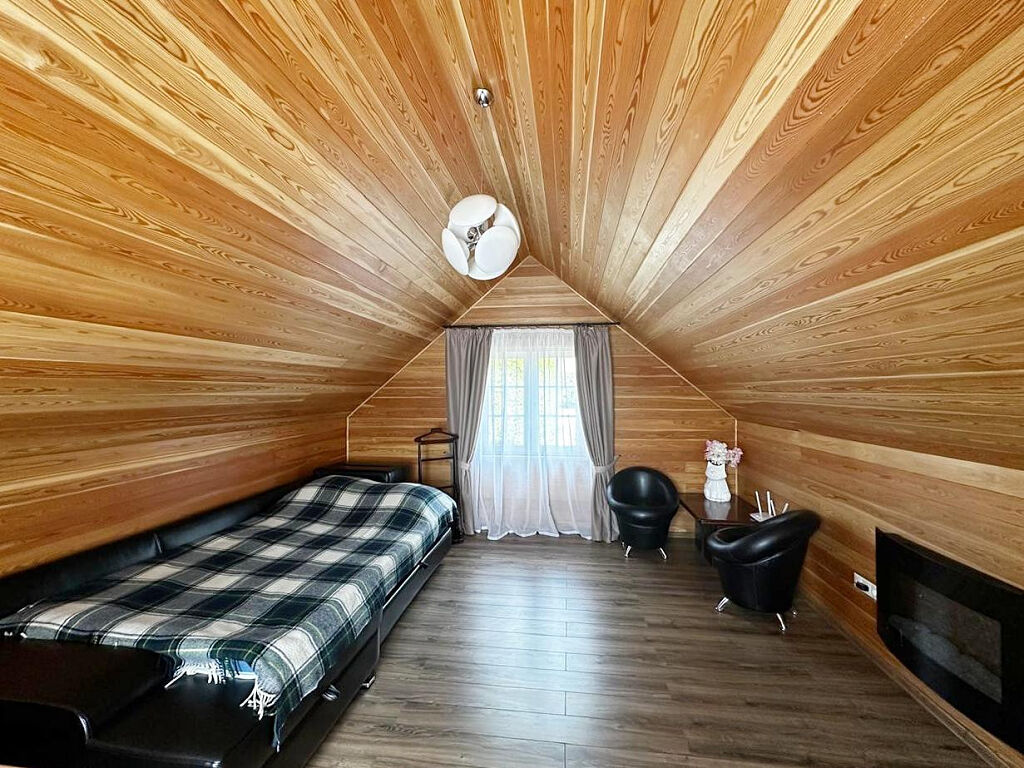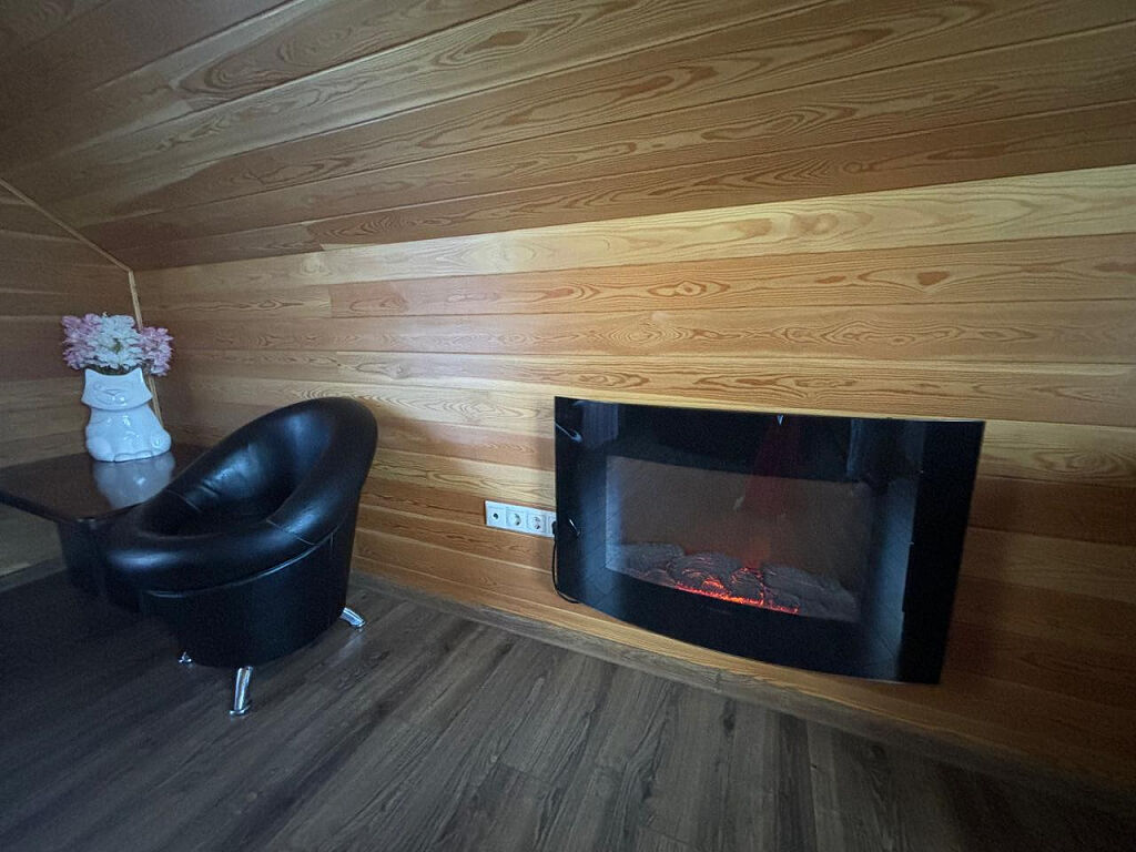 На втором этаже: уютная спальня с камином.