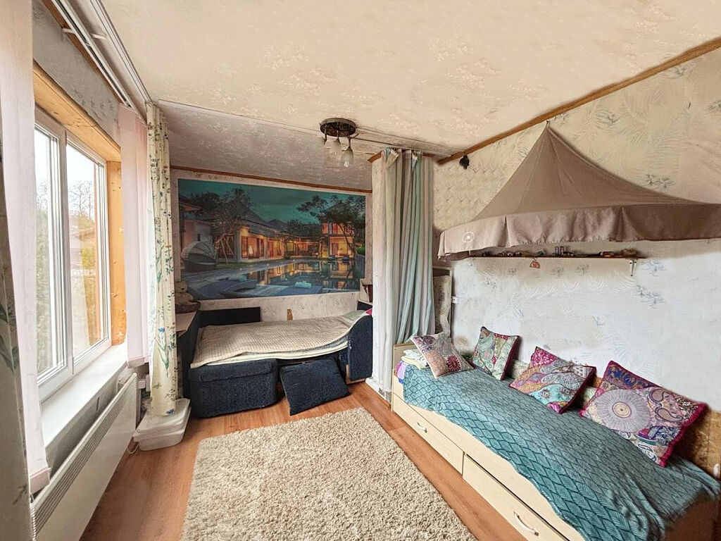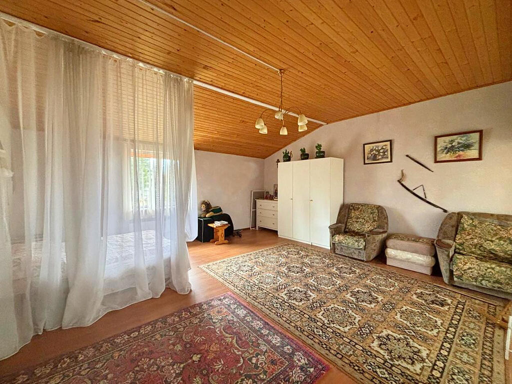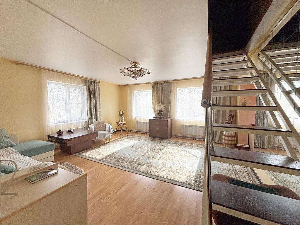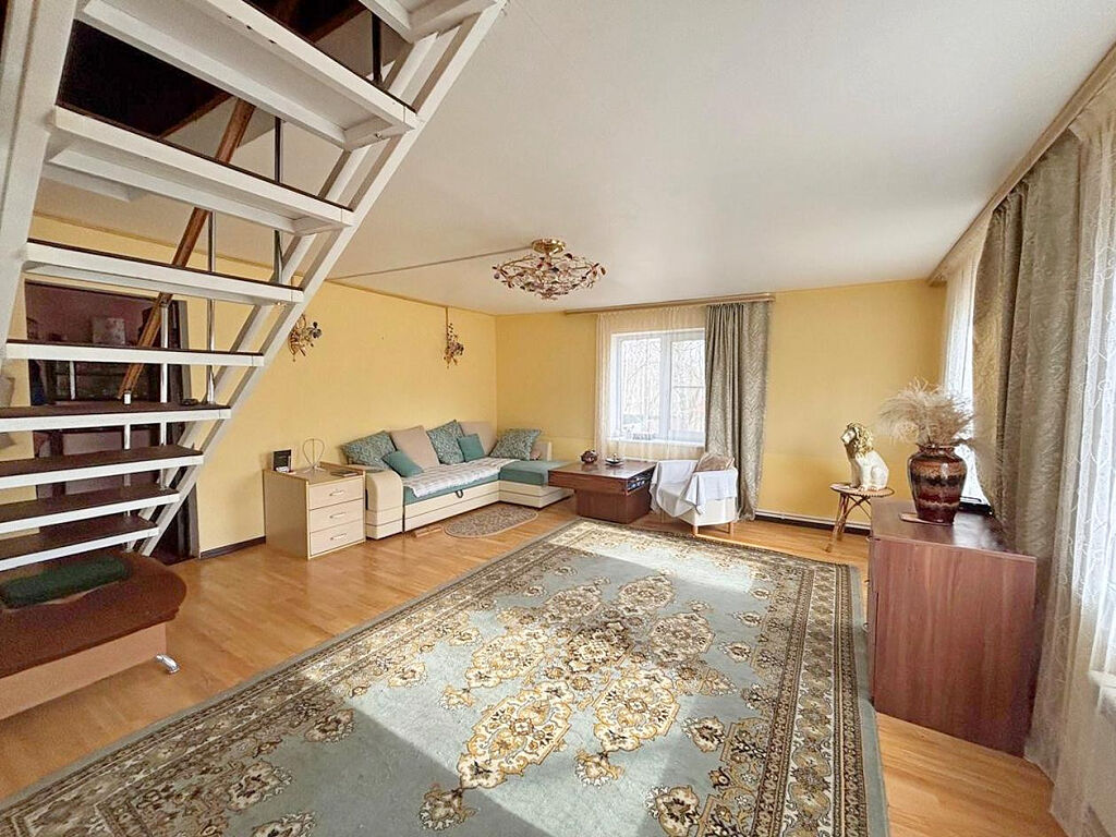 В доме 5 комнат (2 на первом и 3 на втором этаже), санузел, баня, кухня+столовая.