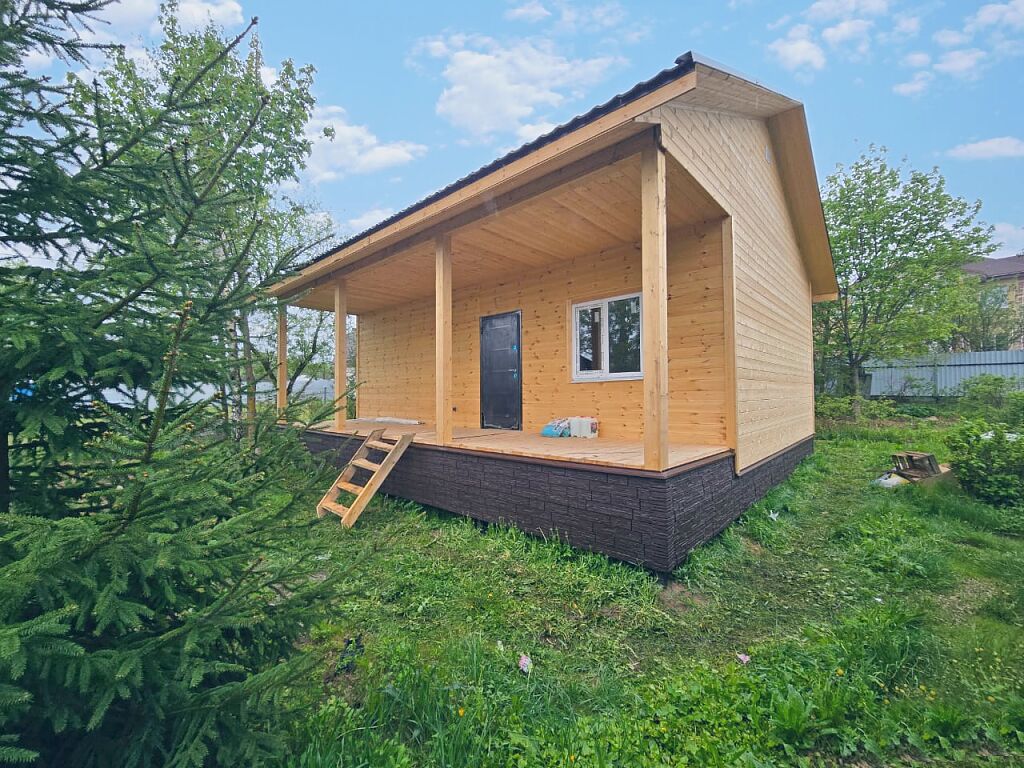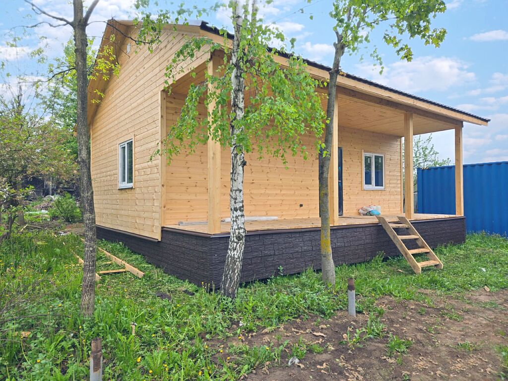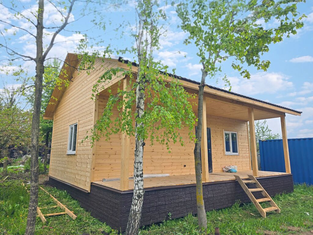 Современный одноэтажный дом для круглогодичного проживания, с комфортной планировкой: кухня – гостиная, две изолированные комнаты, санузел, просторная входная группа, техническое помещение и терраса.