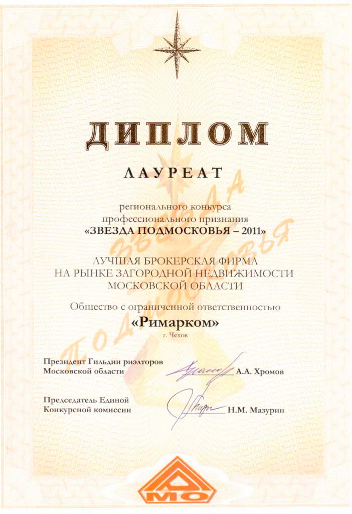 - АН «Римарком» удостоено награды в конкурсе профессионального признания «Звезда Подмосковья» в номинации «Лучшая брокерская фирма на рынке аренды жилья».