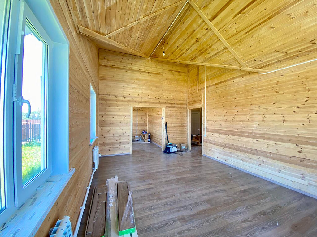 Дом 101 м2 выполнен по каркасной технологии, утепление пол/потолок 200мм. Фундамент свайно-винтовой, крыша металлочерепица, отделка имитация бруса. Полы ламинат + кварцвиниловая плитка, металлическая дверь, окна зимние стеклопакеты.
