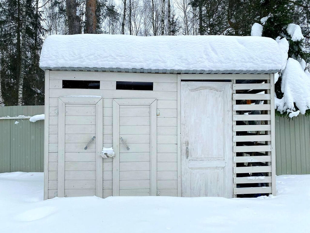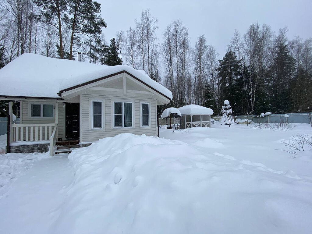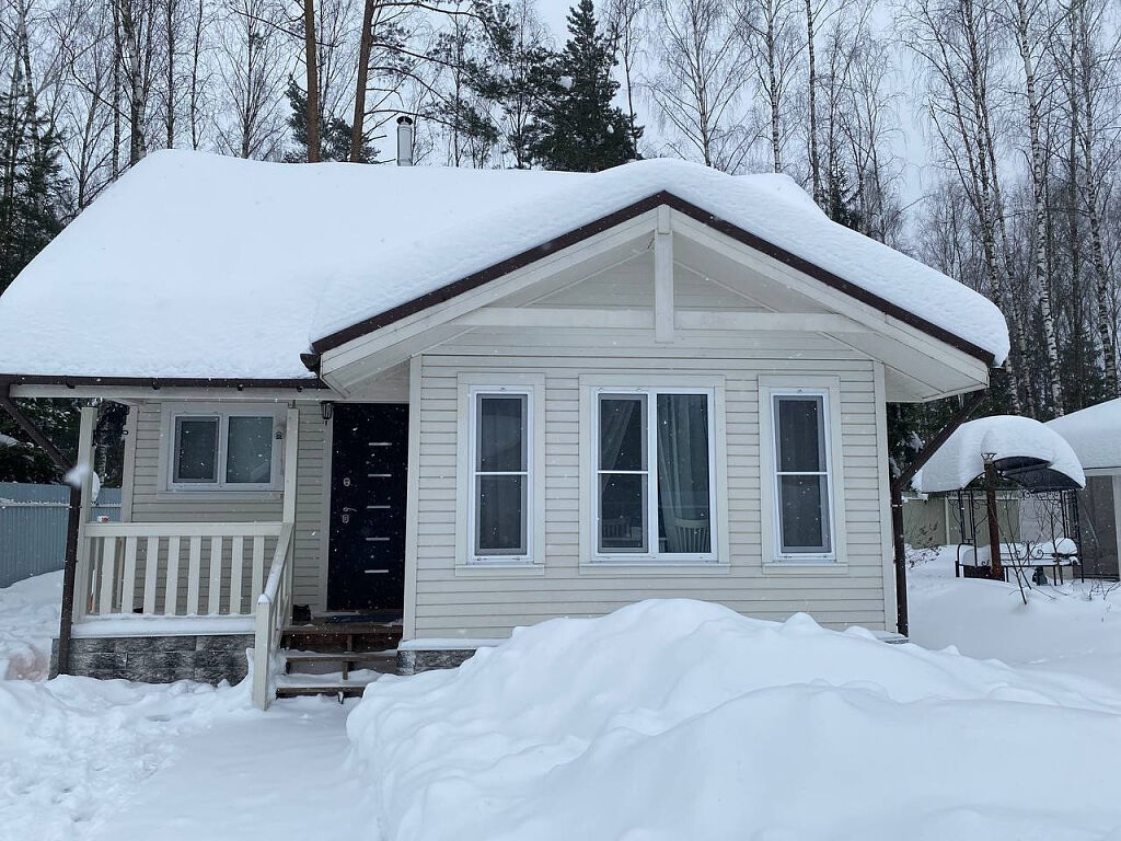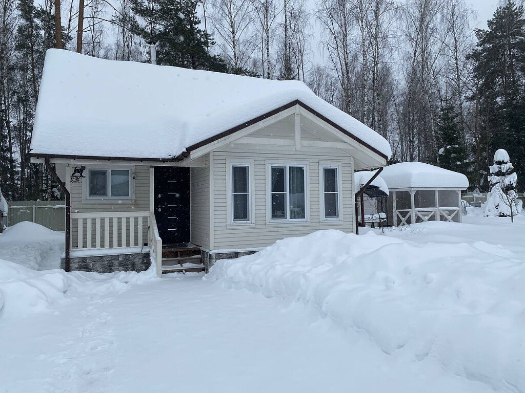 Материал дома - клееный брус 150*80, обработан краской Тиккурила, внутри и снаружи в два слоя.