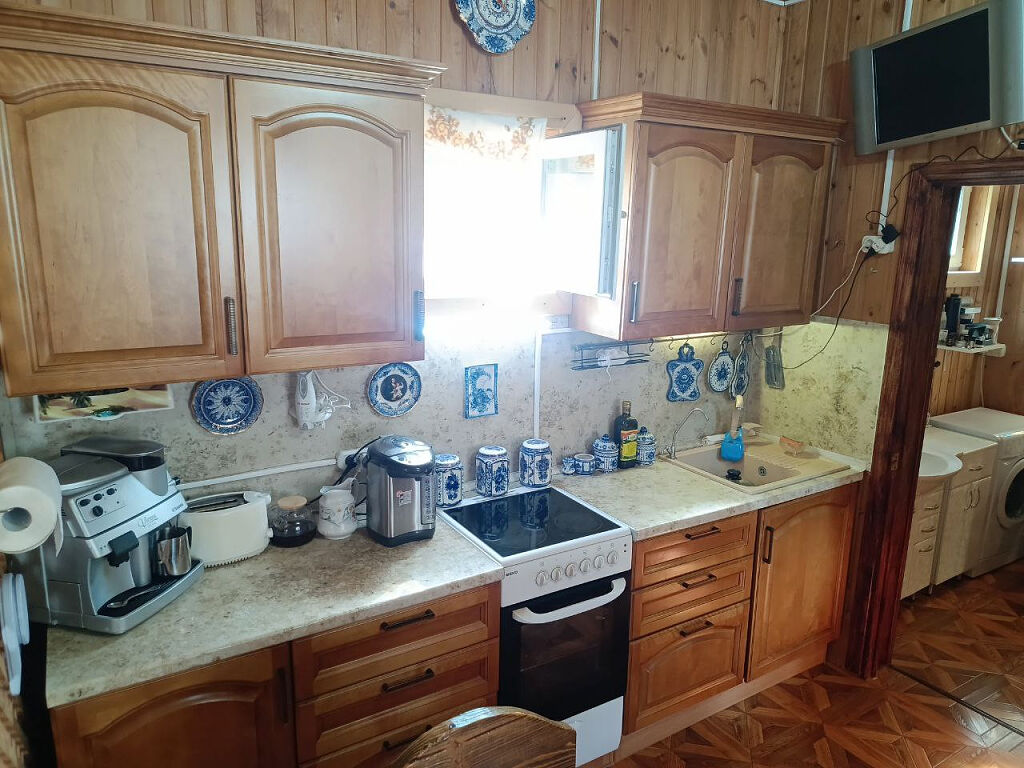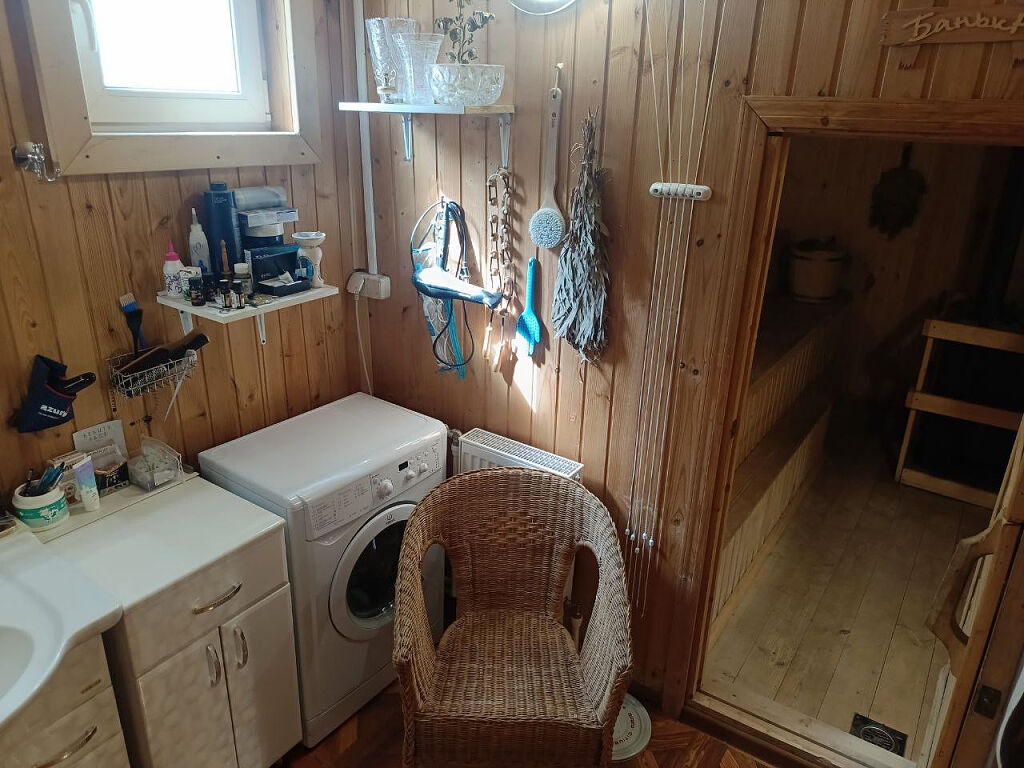 Основной дом деревянный оформлен, как Жилой, регистрация МО, подходит для круглогодичного проживания. Дом со всеми коммуникациями (электричество 15 кВт, вода - скважина, канализация - септик). Есть возможность на мансардном этаже сделать дополнительные спальни и увеличить площадь дома. Есть оборудованная сауна.