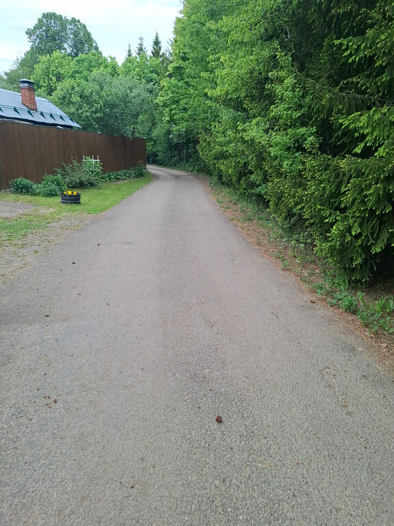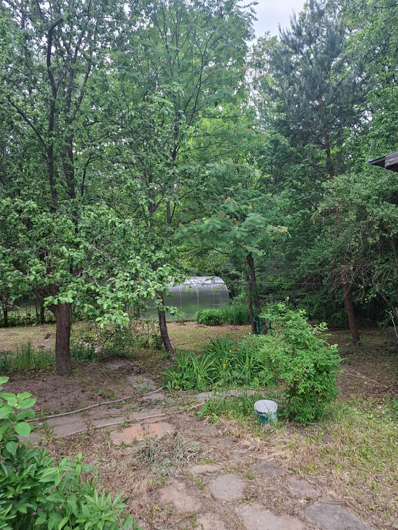 Участок ухоженный, сухой, правильной формы, своя калитка для выхода в лес. Высажены фруктовые деревья, Есть теплица, хоз.блок и металлический гараж.