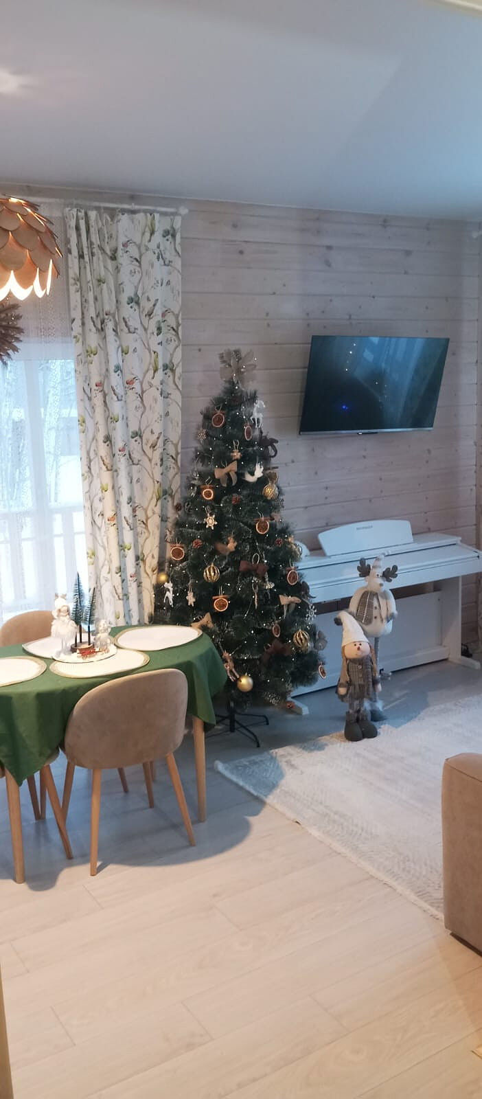 · 1 этаж: светлая кухня-гостиная с выходом на террасу, большое крыльцо 8 кв.м, просторная прихожая, удобная гардеробная и санузел.