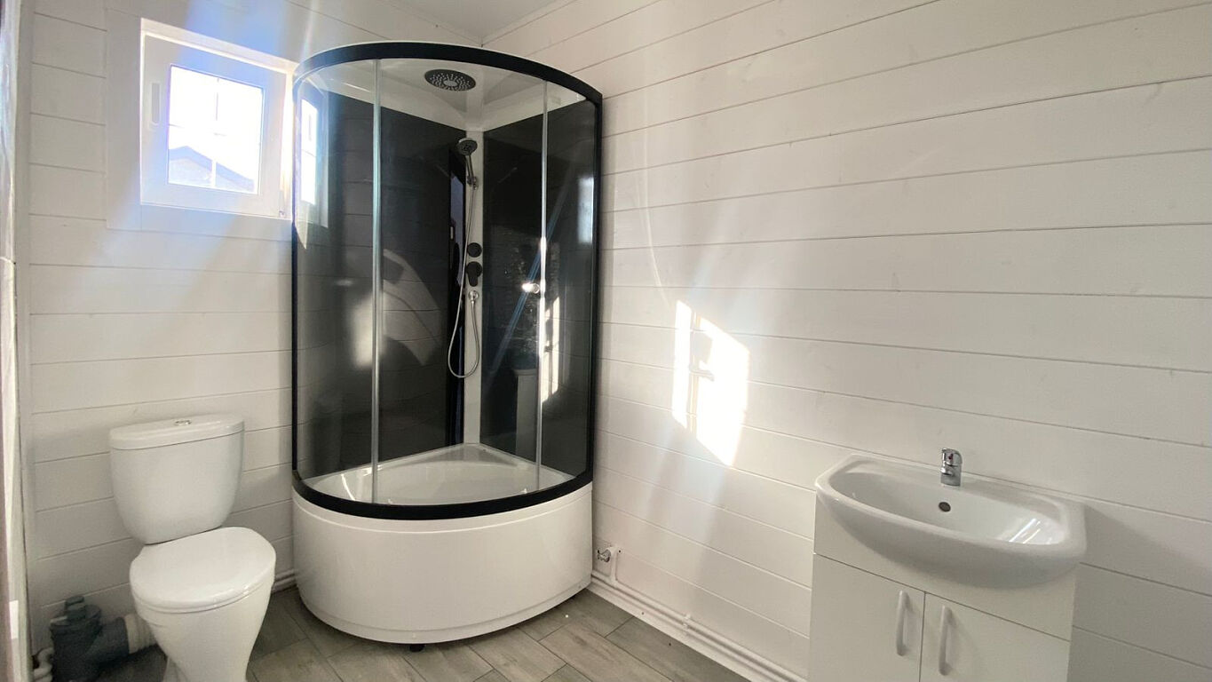 Установлена качественная Сантехника (на первом этаже: душевая, унитаз, раковина).