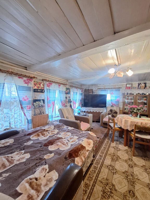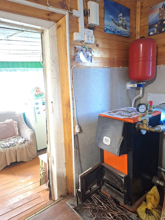 Фундамент ленточный, Дом из бревна кругляк. Отопление : твердотопливный котел на дровах. Вода - скважина на участке. Сан узел-выгребная яма.