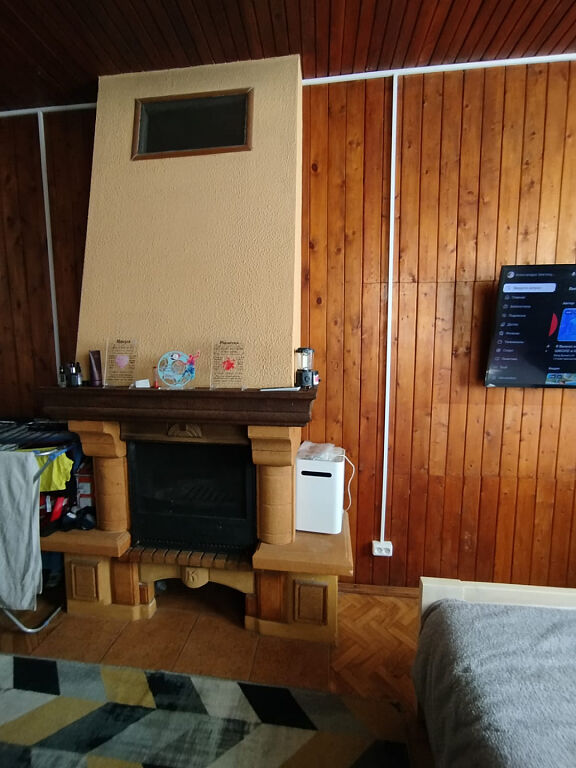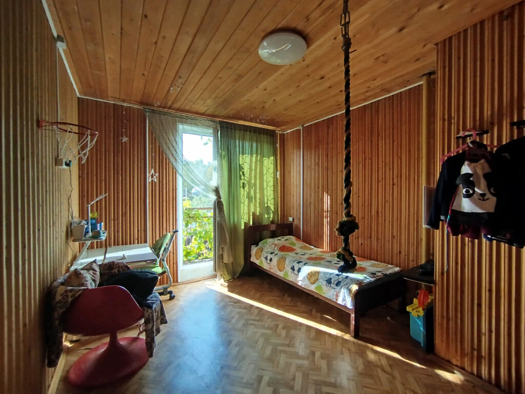 1 этаж: прихожая с теплым полом, просторная кухня – гостиная, санузел, изолированная комната с камином; 2 этаж: 3 изолированные комнаты, одна комната с балконом, есть еще один застекленный балкон.
