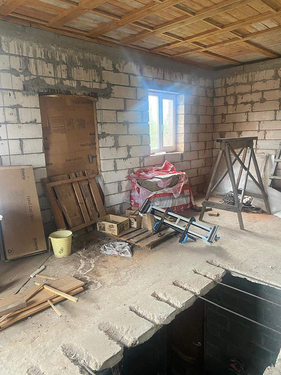 Необходима только чистовая отделка (пол, натяжной потолок, оклейка стен обоями или покраска, лестница на второй этаж, межкомнатные двери)