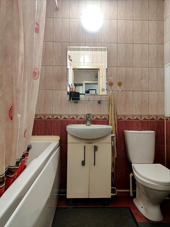 В квартире просторная кухня и застеклённая лоджия. Квартира находится на комфортном 4 этаже 10-этажного кирпичного дома. Окна выходят во двор, поэтому здесь тихо и спокойно.