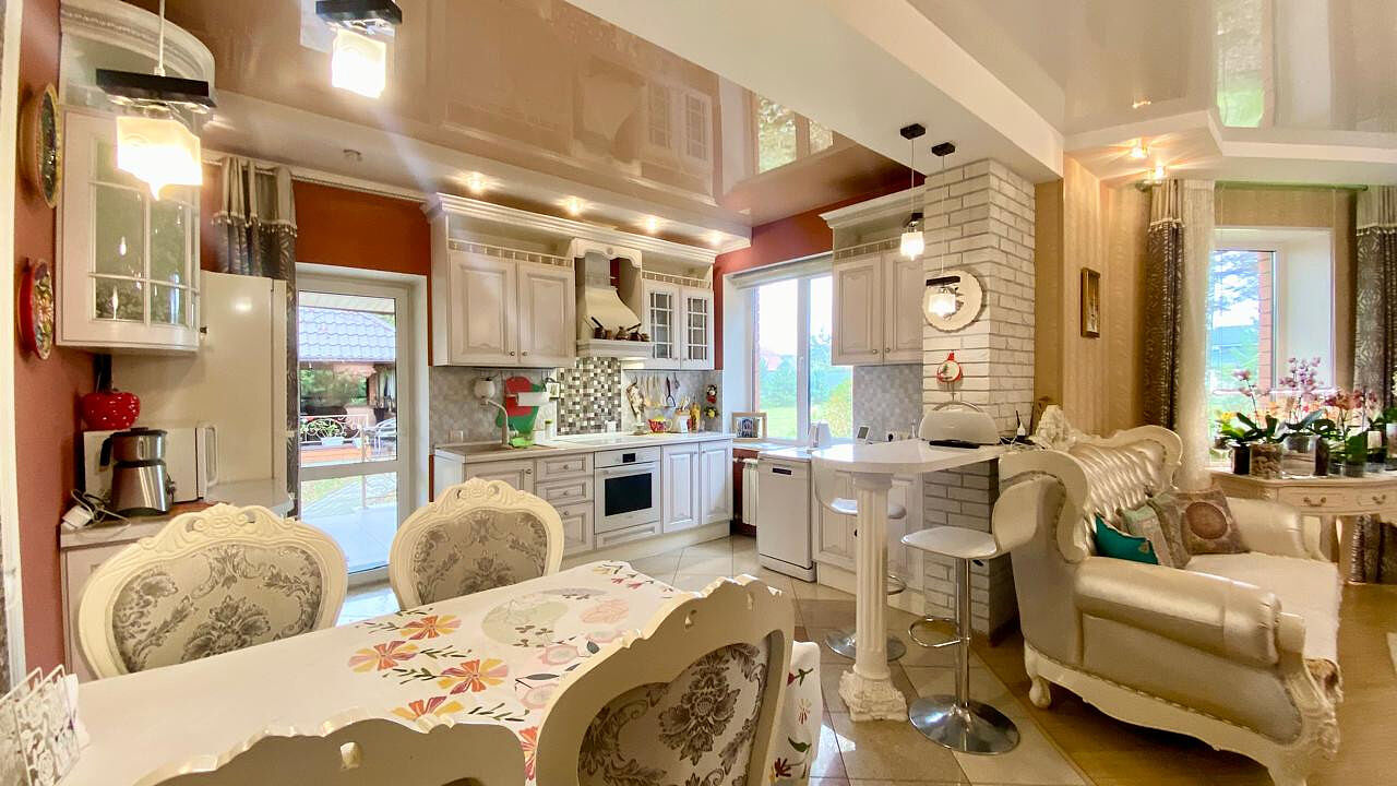 Отличная планировка: большая кухня, на обоих этажах большие гостиные, три большие спальни, два просторных санузла, холл, коридор, гардеробная, веранда с выходом из кухни.