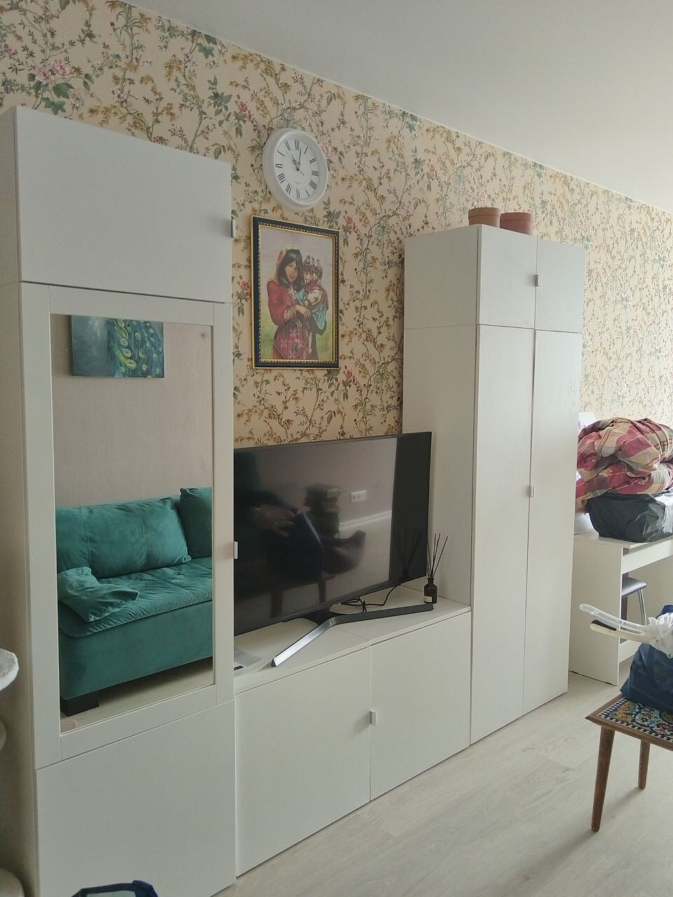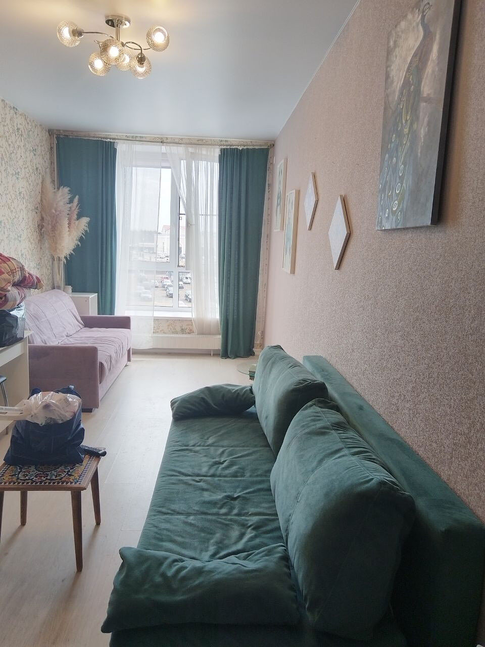 Квартира полностью готова для проживания. Техника (Смарт Телевизор, Холодильник, Стиральная машина) и мебель остаются.