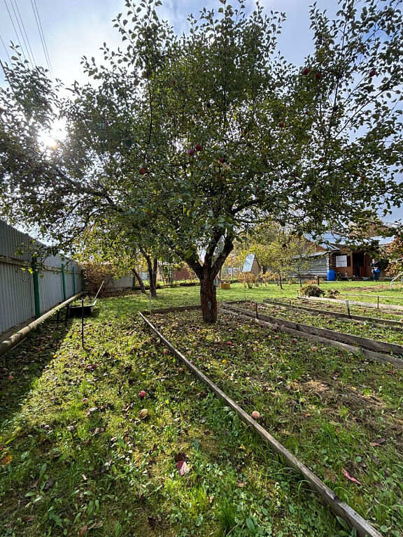 Участок площадью 7.86 кв.м., огорожен с четырех сторон забором, на участке растут плодовые и декоративные растения, есть зона огорода. На участке расположен большой хозблок для хранения.