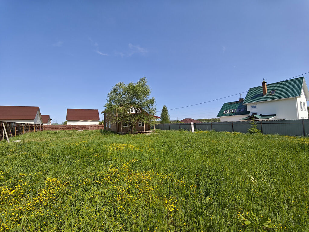 Участок, площадью 10 соток, ровный, огорожен с четырех сторон забором.