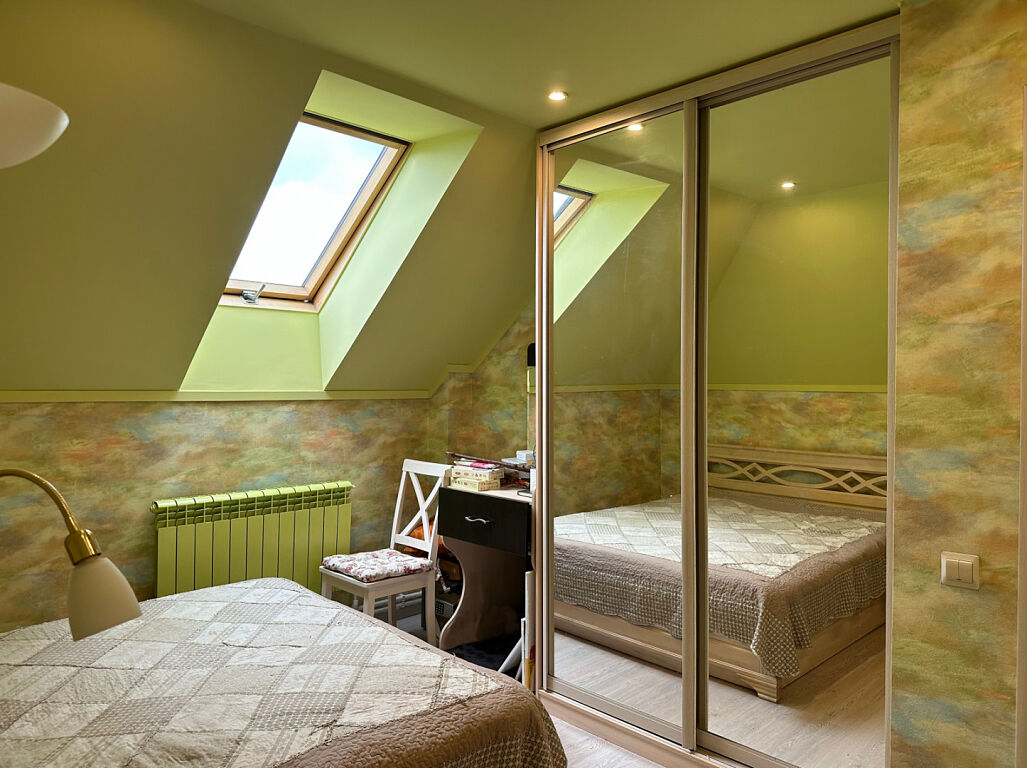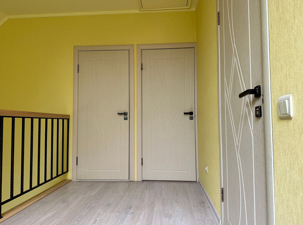 В доме функциональная планировка: просторная входная группа, светлая гостиная, рабочий кабинет, три изолированных спальни (одна из них на первом этаже), два санузла (один из них на втором этаже), котельная с отдельным входом.