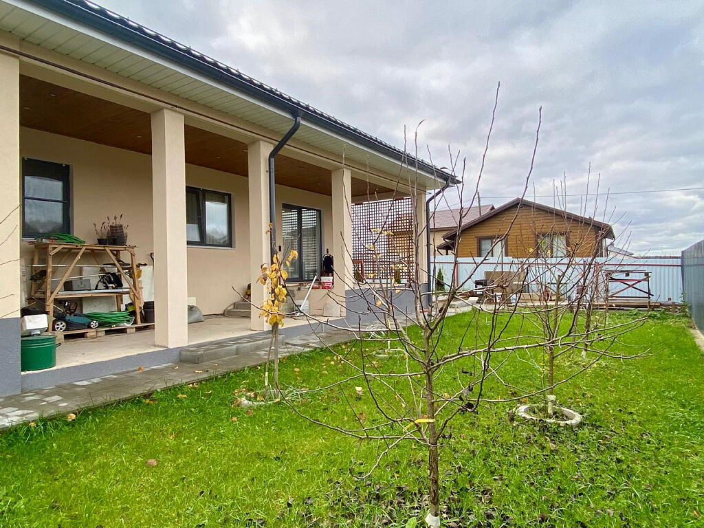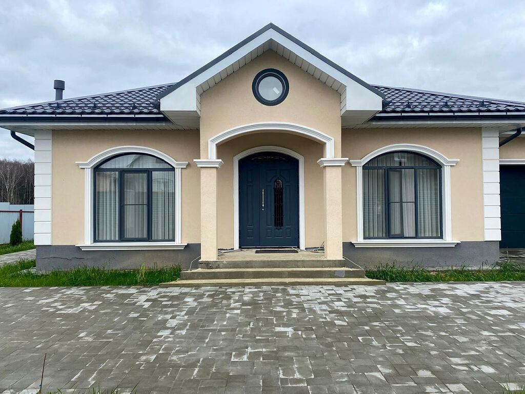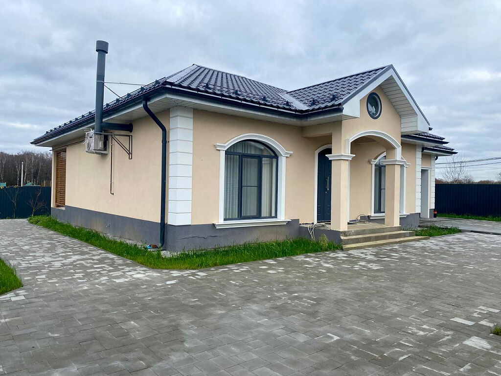 Дом расположен на участке 7 соток. Участок благоустроен, плиткой вымощены дорожки и площадка перед домом, во внутреннем дворике высажен фруктовый сад.