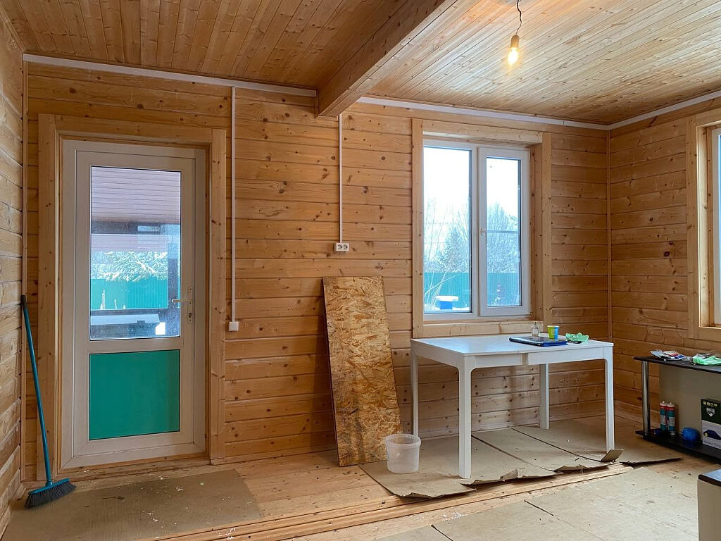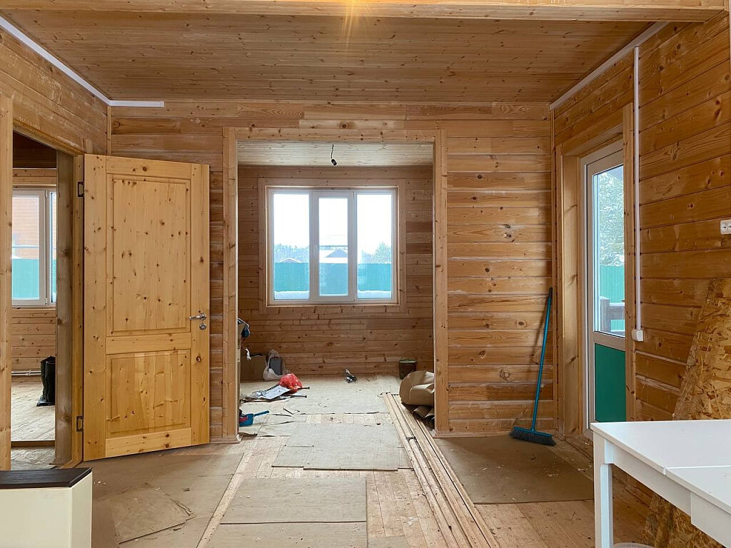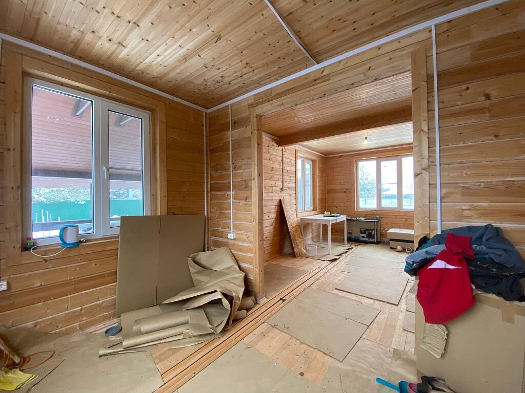 Первый этаж - клееный брус-180 мм, между брусьями утеплитель.