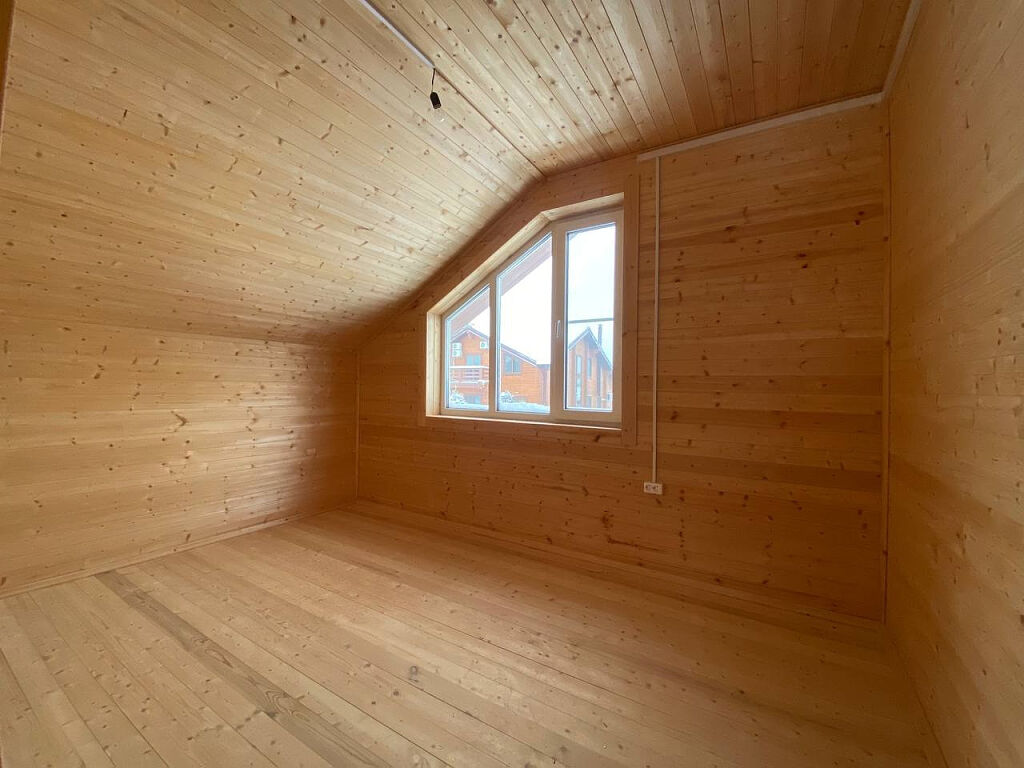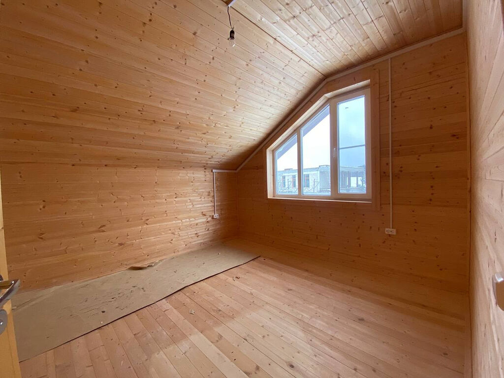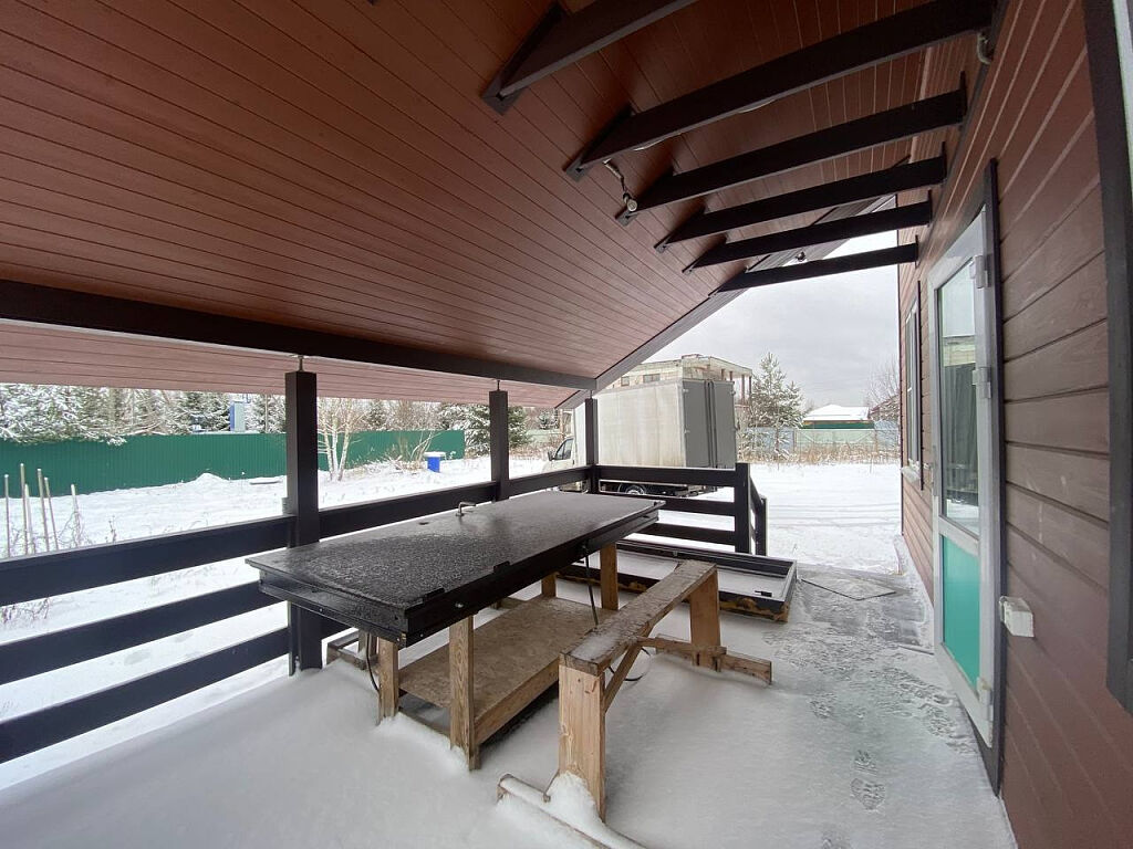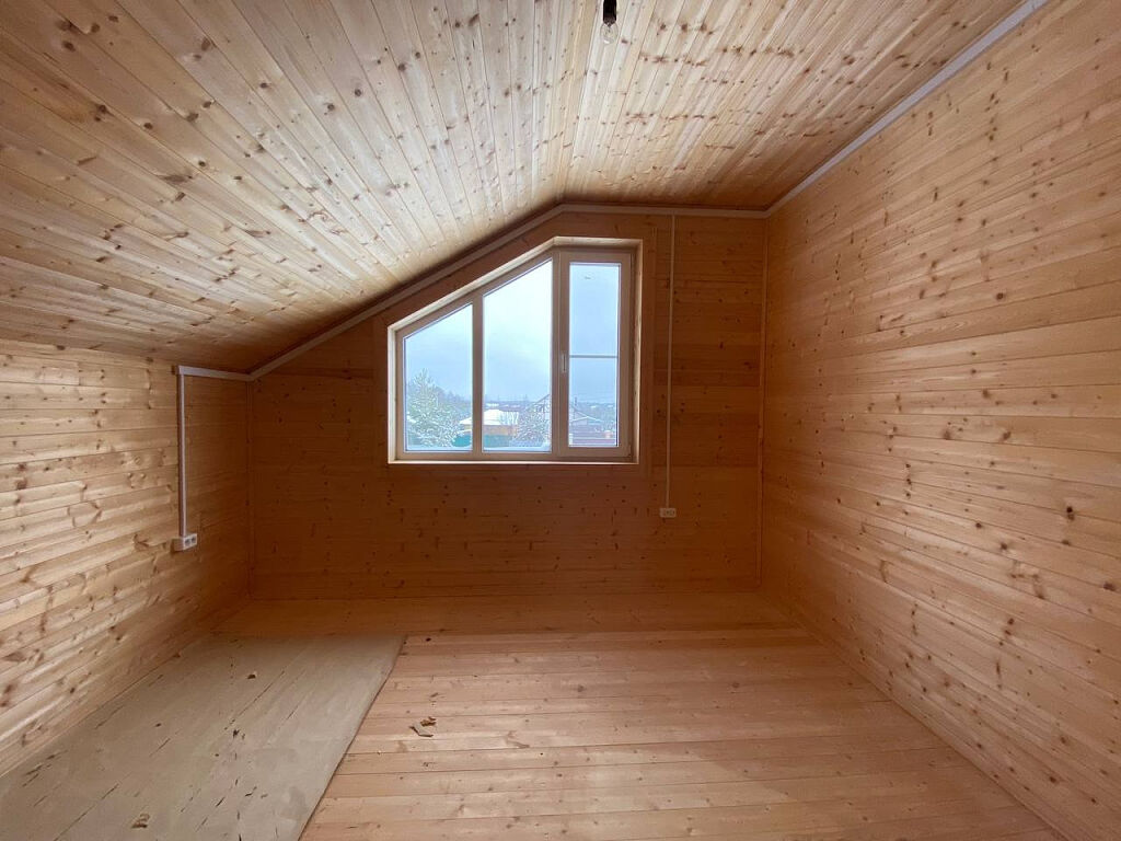 В доме 5 спален, одна из них на первом этаже. Гостиная с выходом на большую веранду 3х5. Светлая кухня. Удобная лестница на второй этаж.