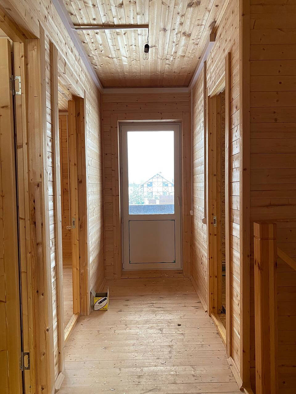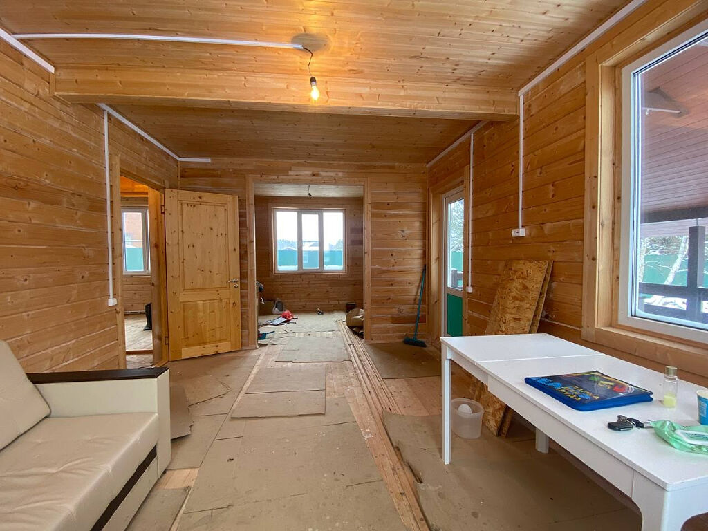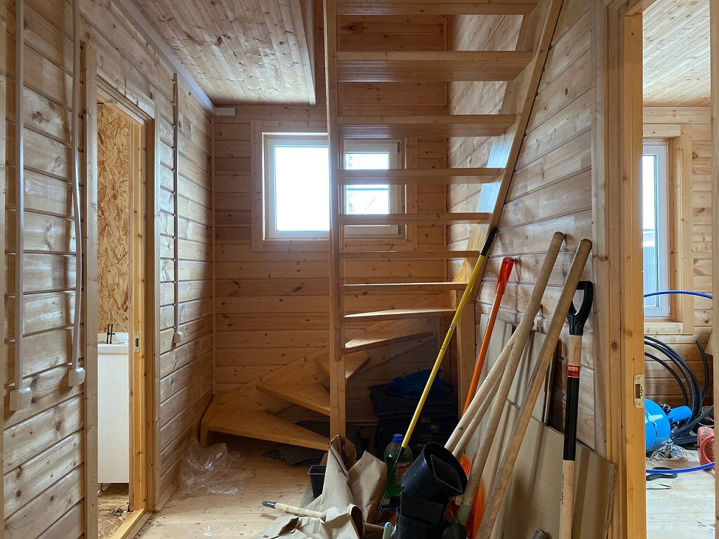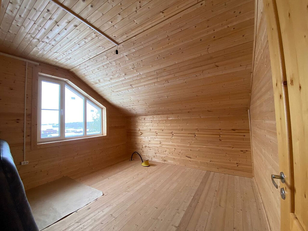 В доме 5 спален, одна из них на первом этаже. Гостиная с выходом на большую веранду 3х5. Светлая кухня. Удобная лестница на второй этаж.
