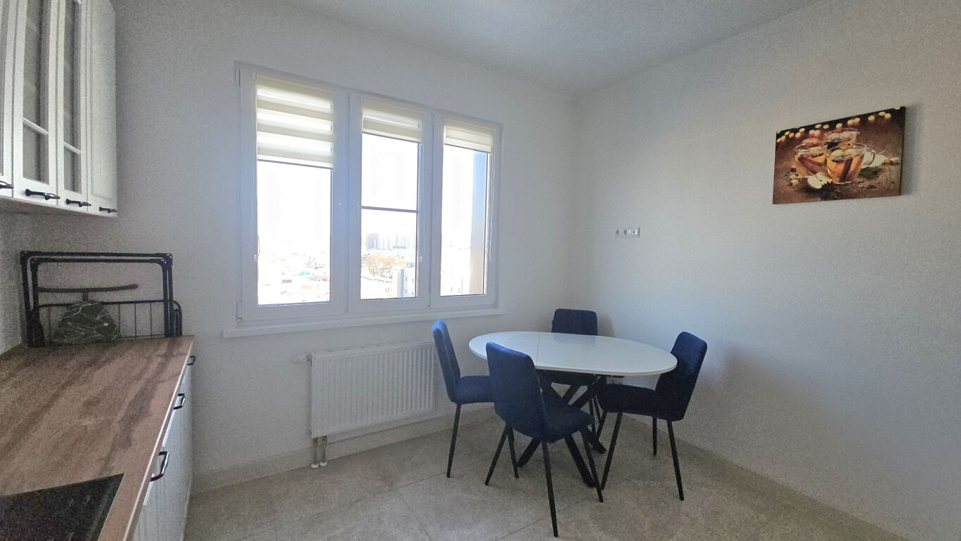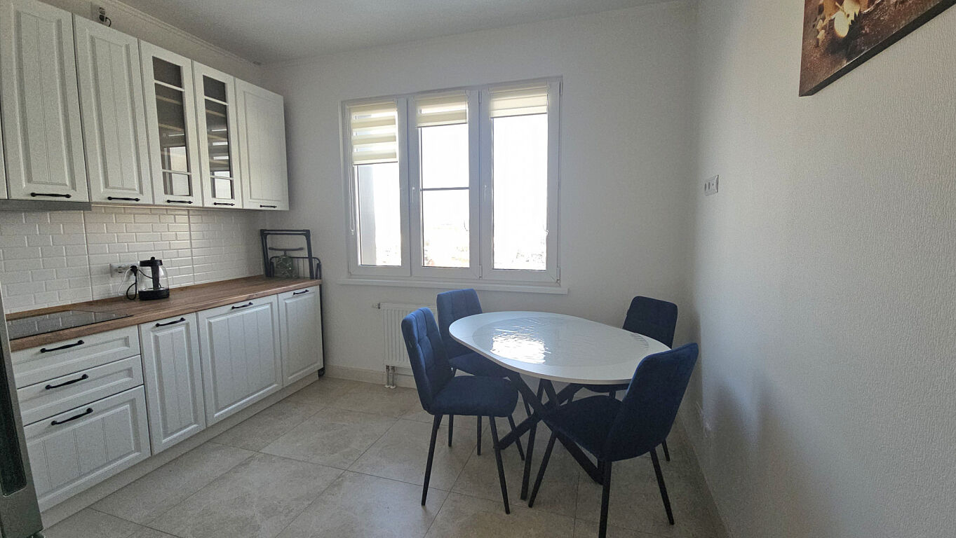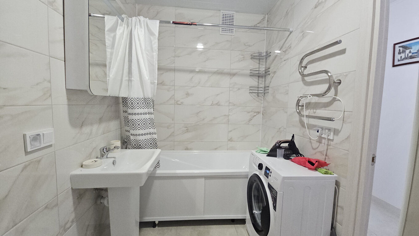 Оборудована всей необходимой мебелью и техникой (холодильник, посудомоечная машина стиральная машинка, утюг, гладильная доска).