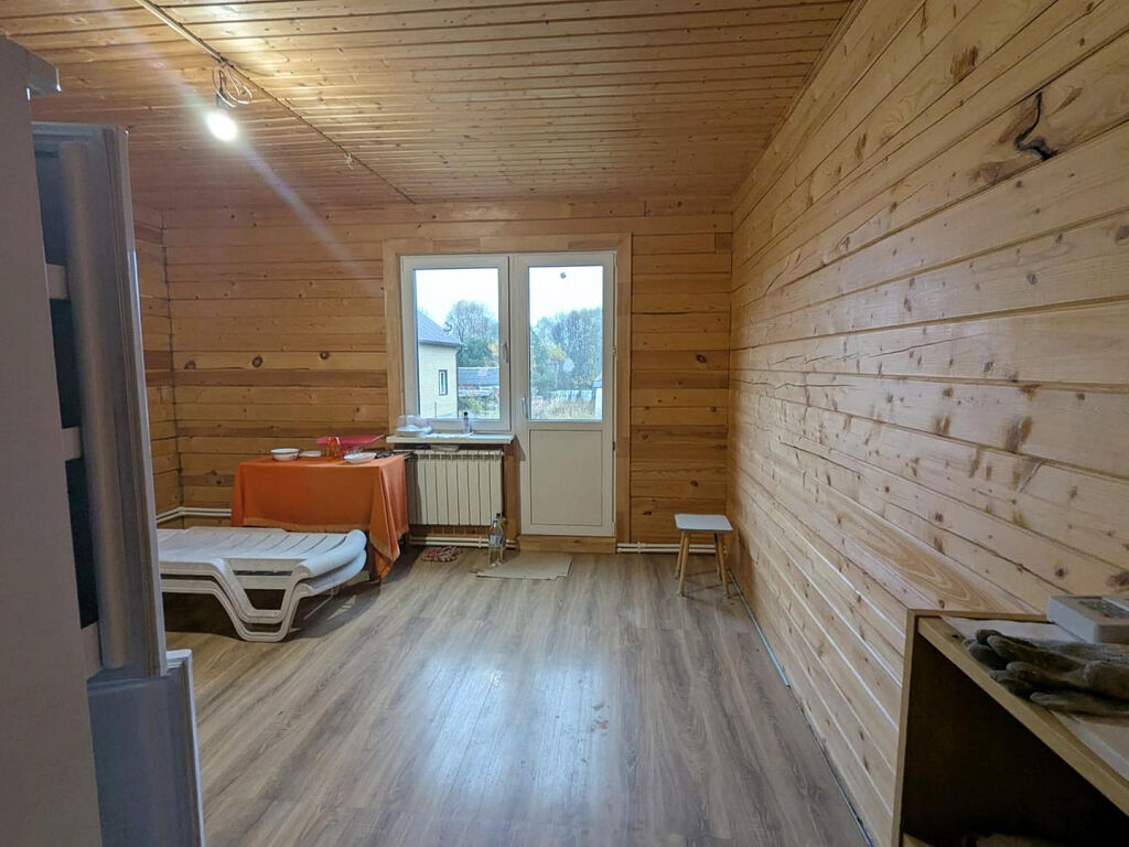 В просторном, уютном доме из бруса (200х200) продается 1/2 доля. Экологически чисто и надежно! Есть все для круглогодичного проживания-свет 15 кВт, вода скважина и септик. Газ по границе участка, который можно подключить в любое время. Утеплен как пол, так и крыша. Фундамент-ленточный, крыша-металлочерепица, на окнах - двухкамерные стеклопакеты. В доме имеется три спальни просторная кухня.