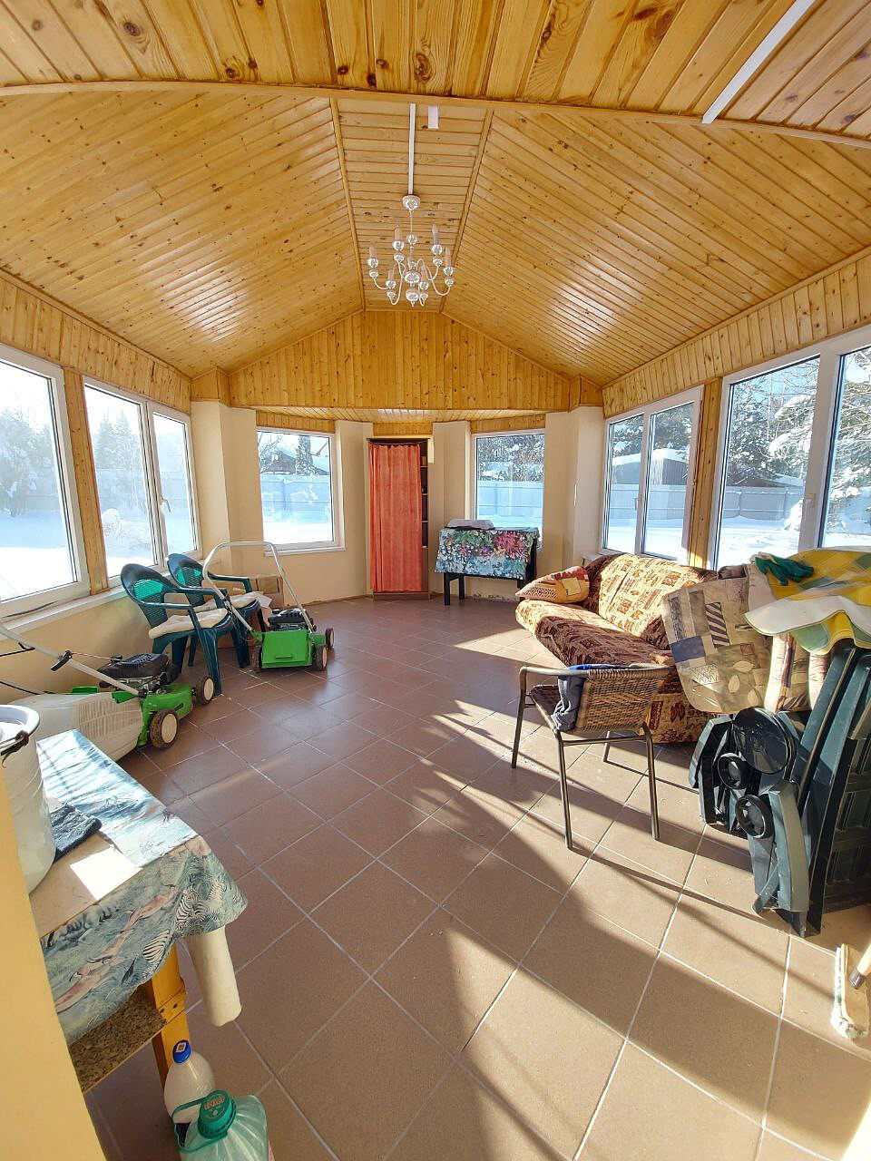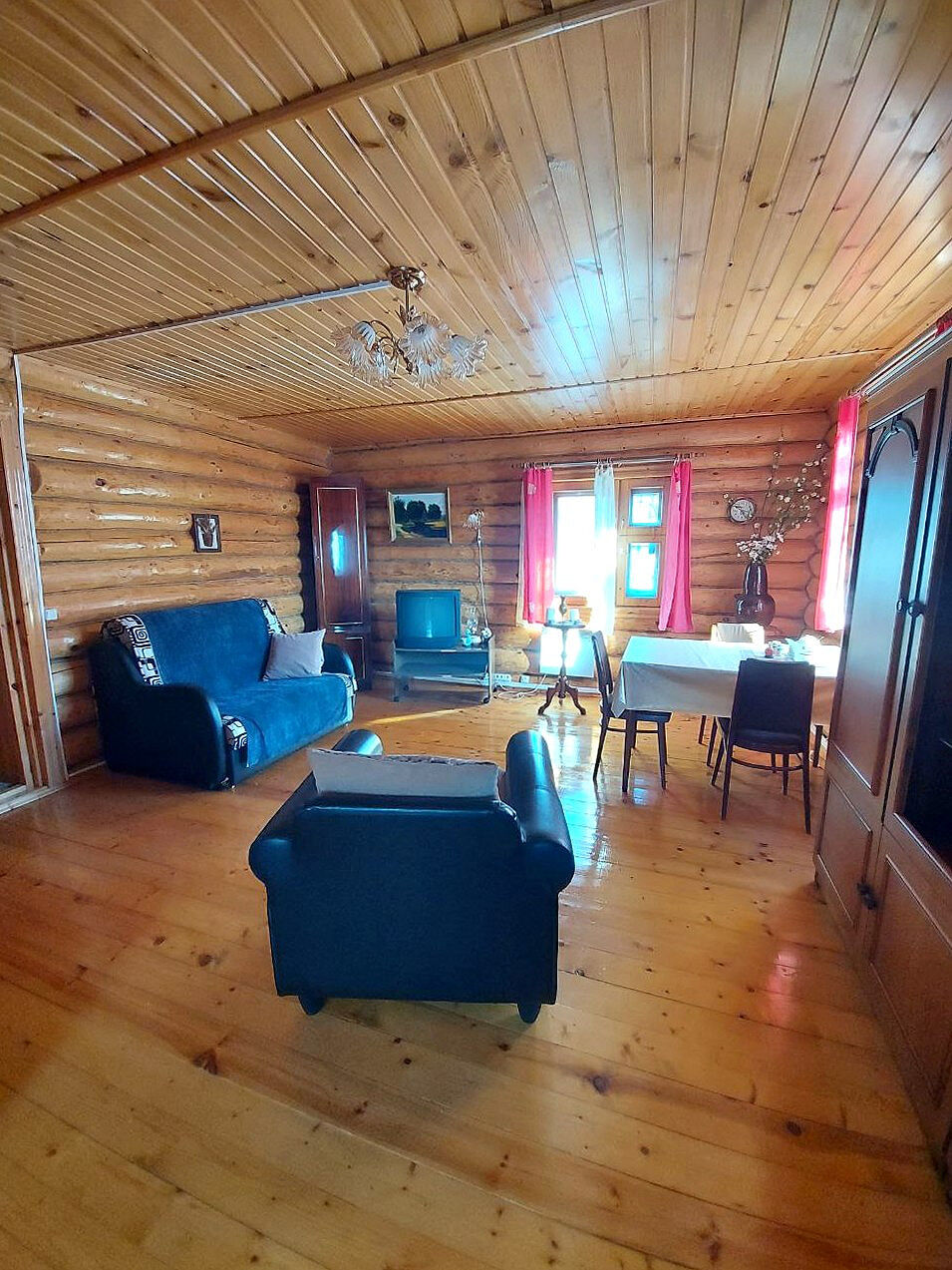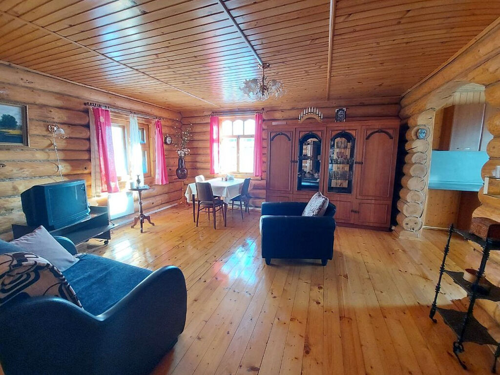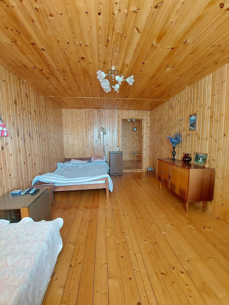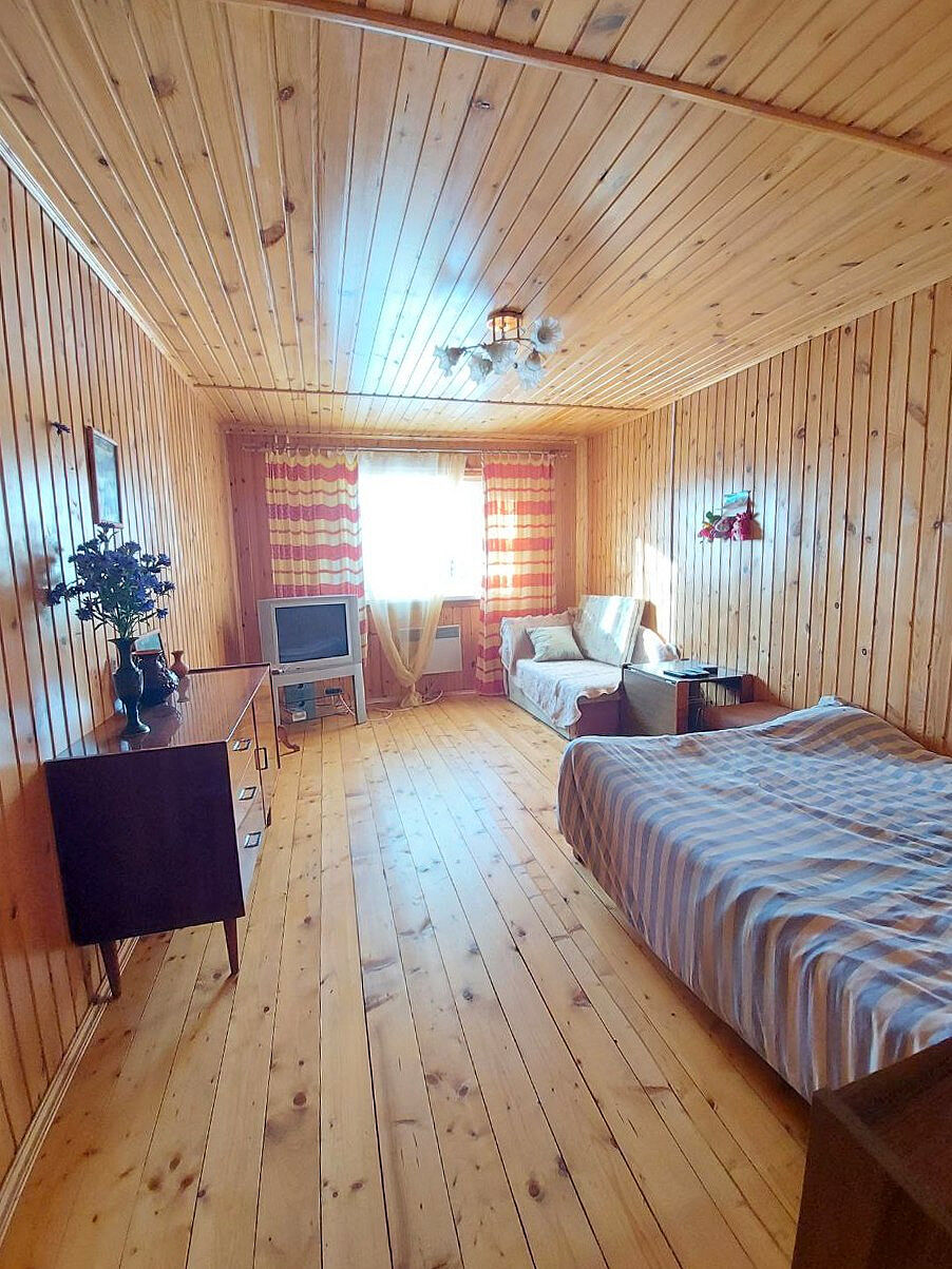 1 этаж: кухня гостиная просторная и теплая, небольшая спальня.