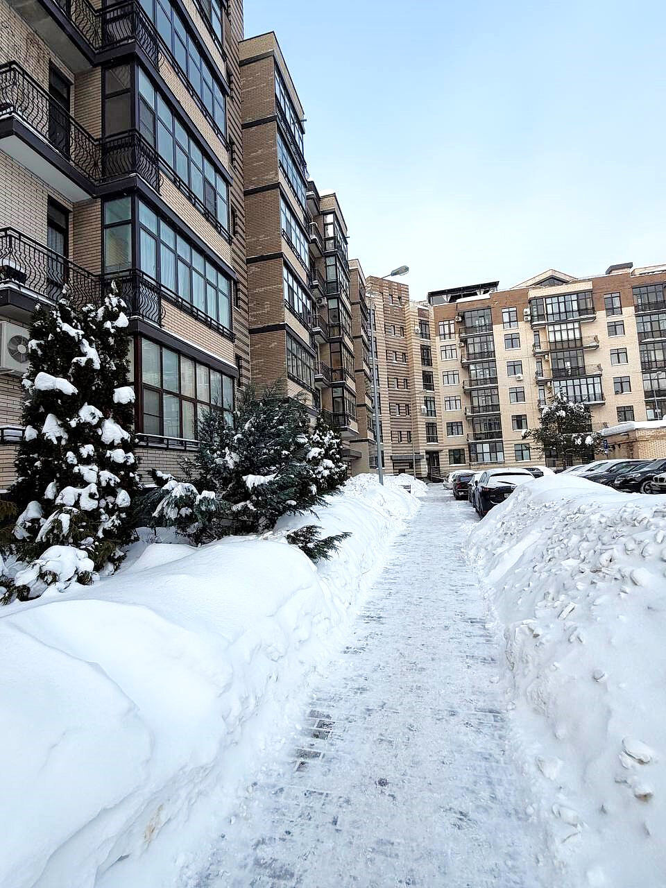Дворы жилого комплекса закрыты от проезда для транспорта,