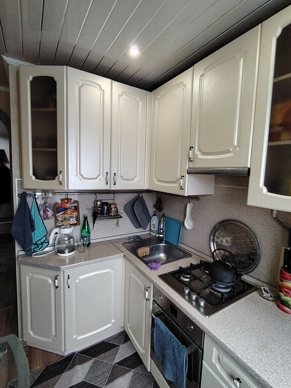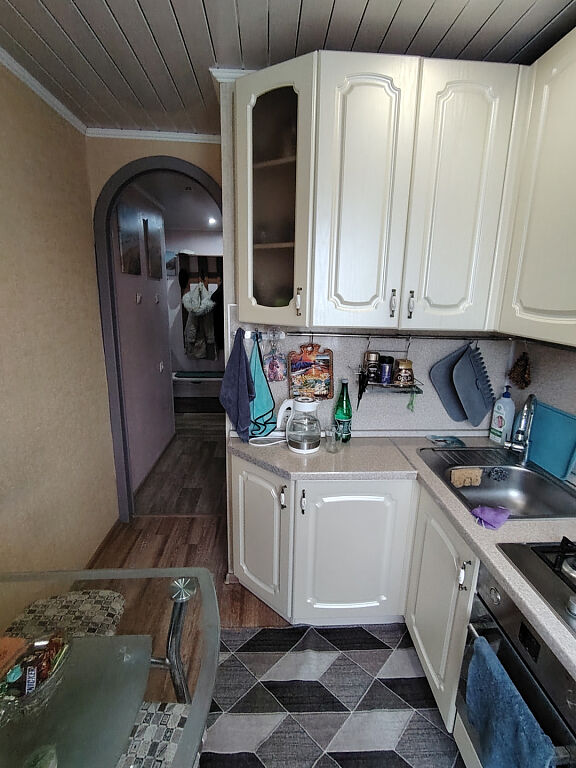 Общая площадь 44.3 м, жилая площадь 30.4 м, кухня 5 м. Раздельные комнаты, кладовая ,балкон застеклён ,санузел совместный. В квартире неплохой ремонт , хорошая кухня , можно сразу заехать и жить, часть мебели остается. Квартира чистая, тёплая и в хорошем состоянии, на 4ом этаже, лифта нет, подьезд чистый, без посторонних запахов.