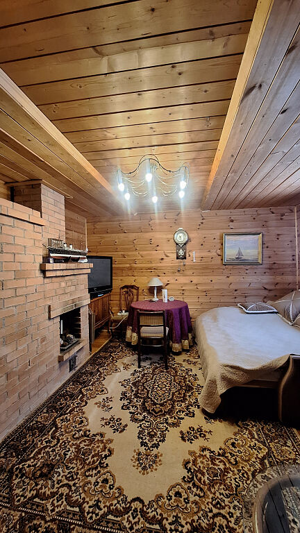 При отоплении печью на дровах можно проживать в зимний период. Полы: шпунтованная доска, покрыта лаком.