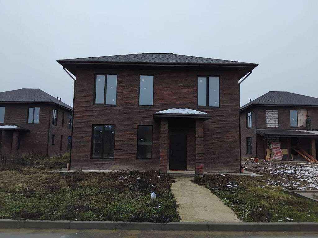 ПЛАНИРОВКА И МАТЕРИАЛЫ: дом площадью 174 кв.м. Архитектурный план включает в себя два уровня с функциональным распределением пространства. На первом этаже располагается уютная терраса, просторная кухня, вместительный коридор, жилая комната с возможностью организации зоны отдыха, котельная и современно оборудованный санузел. Второй этаж предлагает четыре комфортабельные спальни, второй санузел, ходовую зону и балкон, с которого открывается живописный вид на окружающую местность.