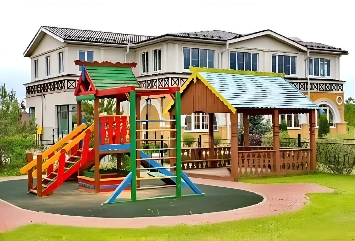— Детский сад, школа, магазины, кафе внутри посёлка
